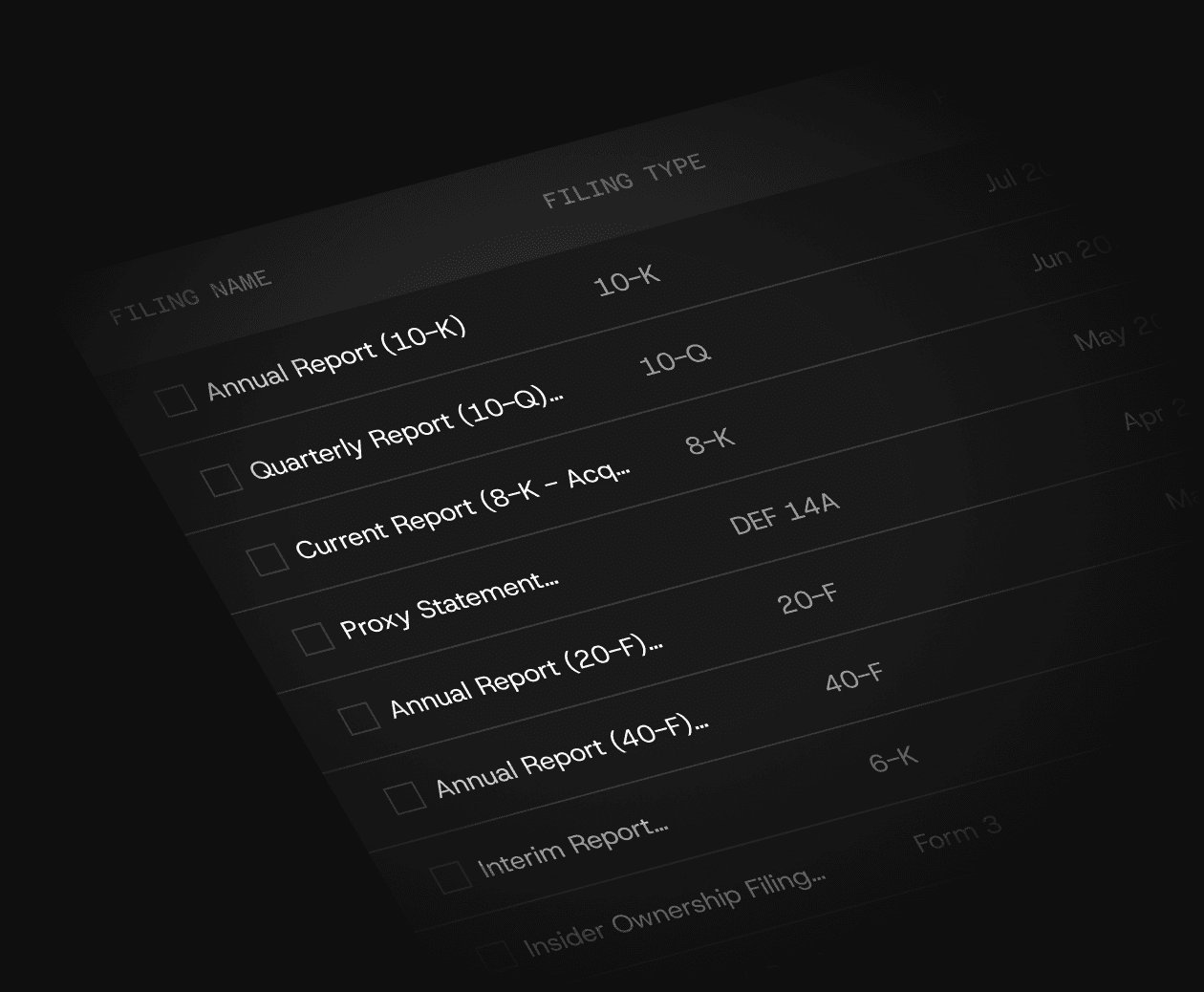 Access to all available regulatory filing types